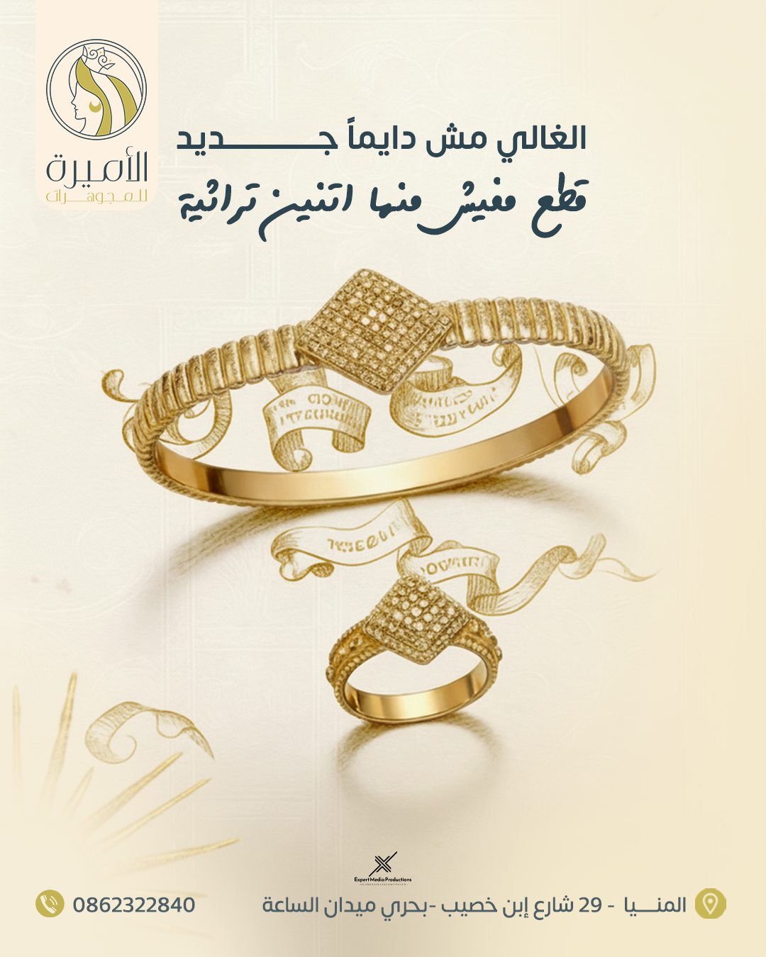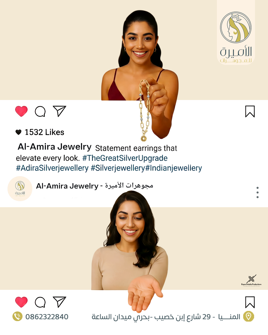 The goal of managing Al-Amira Jewelry was to present the brand in a way that reflects luxury and elegance through a refined visual identity and distinctive designs that highlight product details and quality. We focused on creating visually appealing content that showcases the products in an eye-catching way, supported by a content strategy that enhances brand value, resulting in increased engagement and a strong brand perception among the audience.